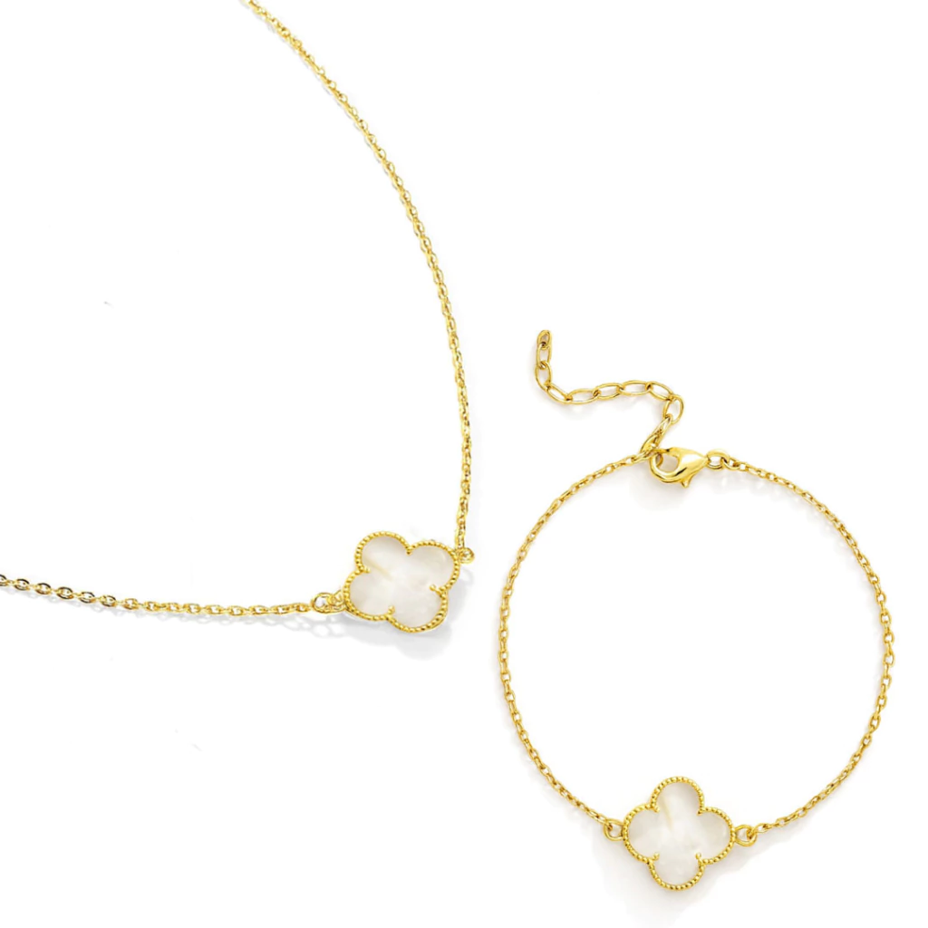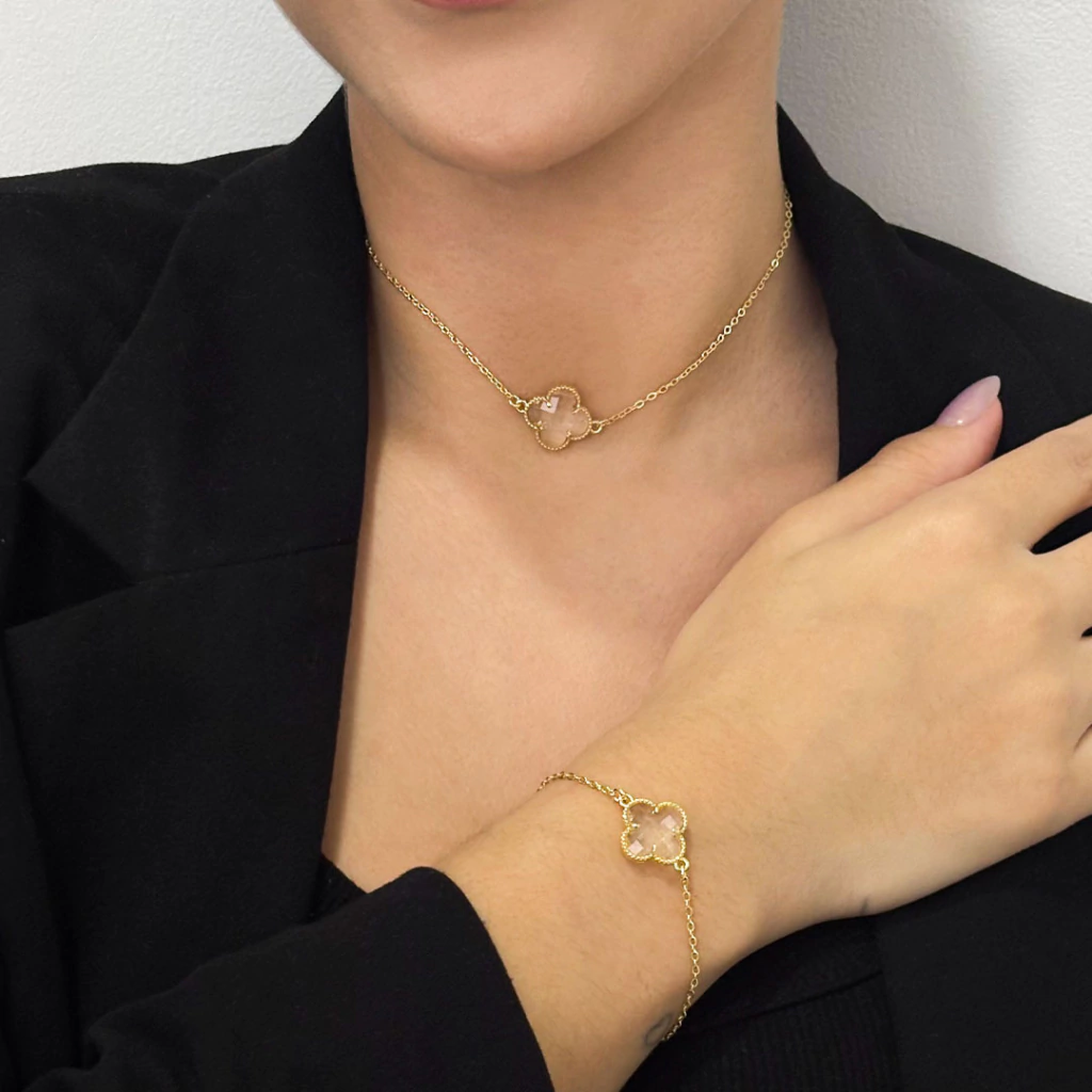 Realce sua singularidade e brilhe em todas as ocasiões com o luxo e a proteção que só o Kit Colar Trevo Cristal + Pulseira Trevo Cristal - Banhado a Ouro 18K pode proporcionar. Aproveite para presentear alguém especial ou transformar seu visual com esse conjunto irresistível!