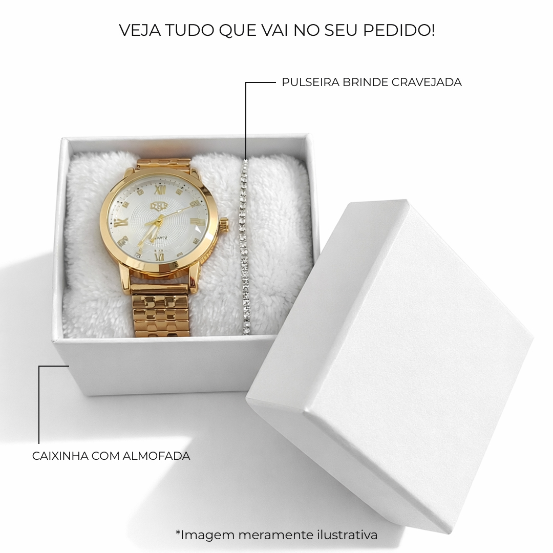 Medições: Diâmetro da superfície: 2,5cm X 2,4cm| Comprimento da Pulseira:19cm |Largura da Pulseira:1cm | Movimento de Quartzo