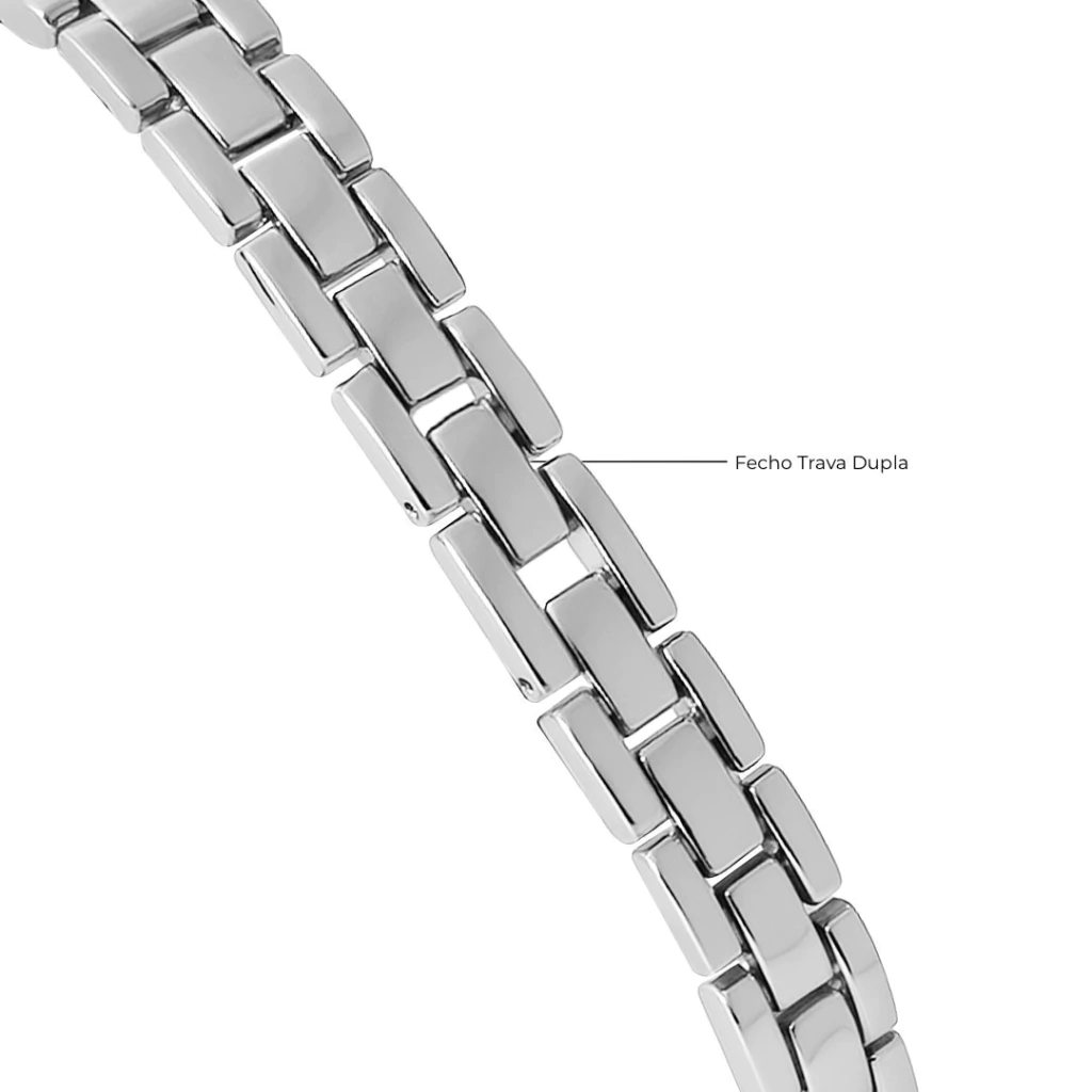 Medições: Diâmetro da superfície:3cm | Comprimento da Pulseira:19cm |Largura da Pulseira:1,8cm| Movimento de Quartzo